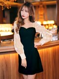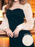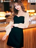 透け感のあるオーガンジー素材の長袖が可愛らしいミニドレス。デコルテのハートネックが女性らしい色気漂います◎ ふんわりとしたAラインシルエットは体型カバーにもなる1着です♪