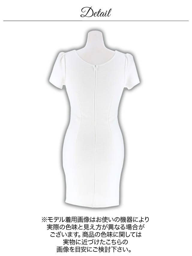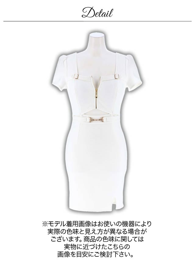 【予約:4/16頃より順次発送】【累計販売1000枚以上】[明日花キララ着用]ホワイト復活!フロントジップバックルウエストカット半袖タイトミニ丈キャバドレス[XS~L/4サイズ展開]