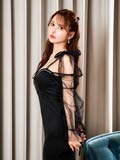 4/21再販!【胸元ジップ】チュール袖とハイウェストでとにかく盛れるスタイルアップキャバドレス